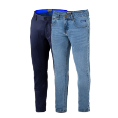 Peso dei jeans: 350 gr/m² Composizione: 98% cotone drill ⋅ 2% elastan Taglie: S a XXXL Denim elasticizzato. Interno a contrasto e lati elasticizzati. 5 tasche...